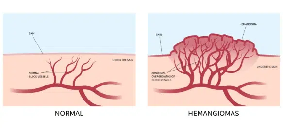 - Haemangiomas: Raised, bright red or bluish marks that grow in infancy and sometimes shrink with age.