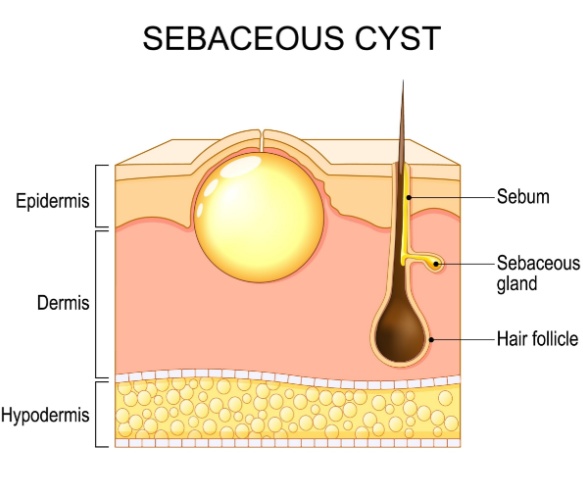 These glands, found next to hair follicles, normally produce sebum (an oily substance that helps keep the skin hydrated and flexible). When the glands produce more sebum than the skin needs, or when they become clogged, they can expand and form small bumps on the skin.